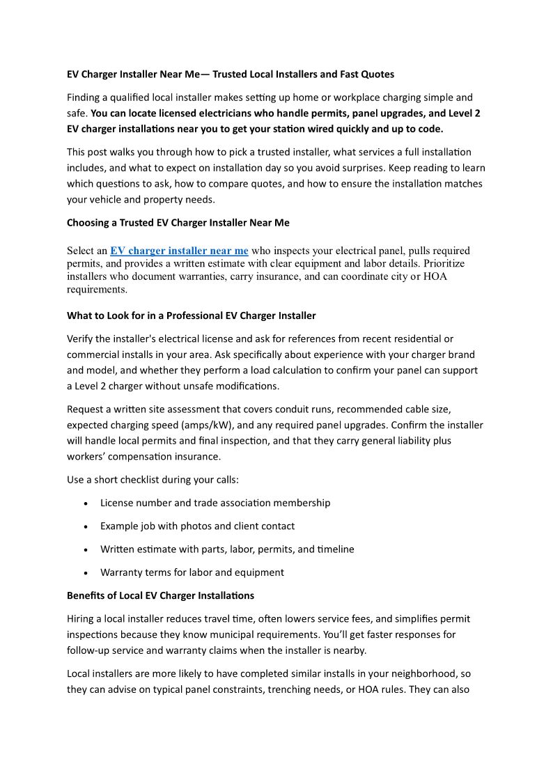 EV Charger Installer Near Me— Trusted Local Installers and Fast Quotes