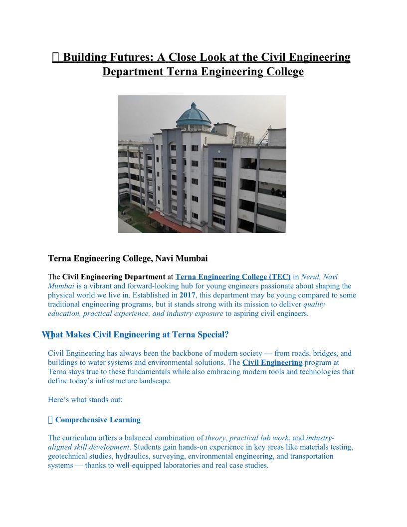 Department of Civil Engineering at Terna Engineering College – Courses, Labs & Careers