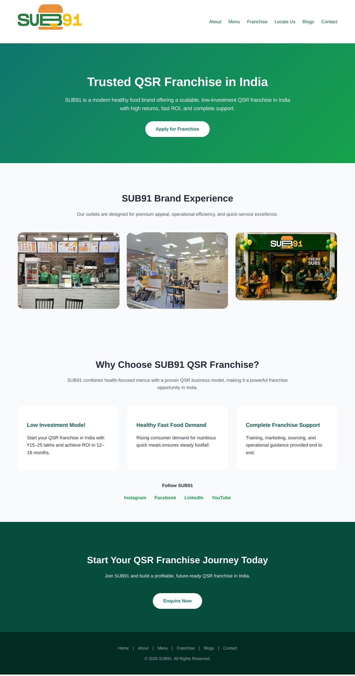 QSR Franchise in India | Low Investment Healthy Food Franchise – SUB91