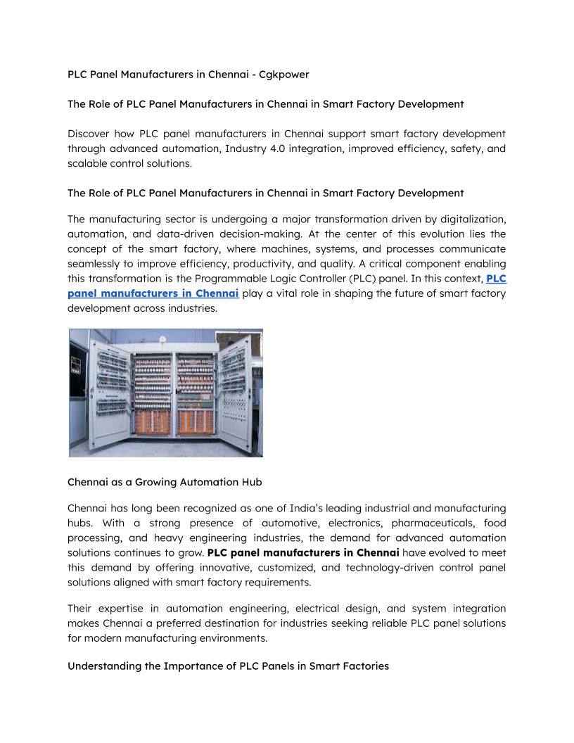 The Role of PLC Panel Manufacturers in Chennai in Smart Factory Development