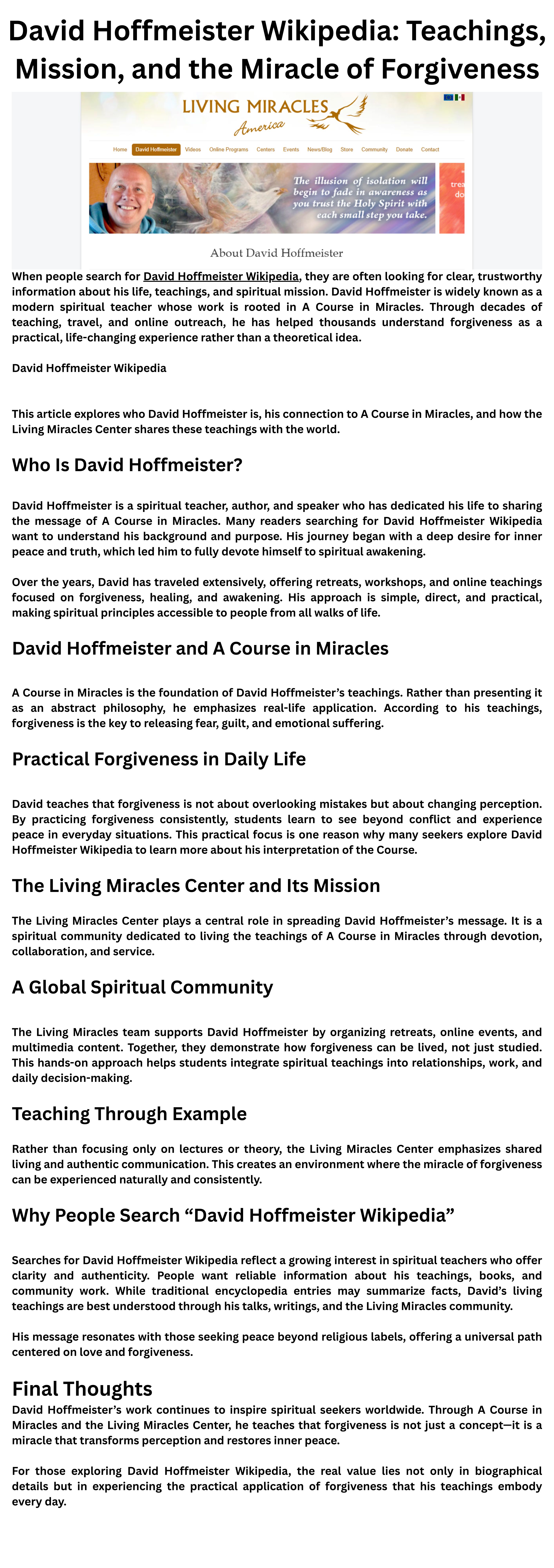 David Hoffmeister Wikipedia Teachings, Mission, and the Miracle of Forgiveness (1)