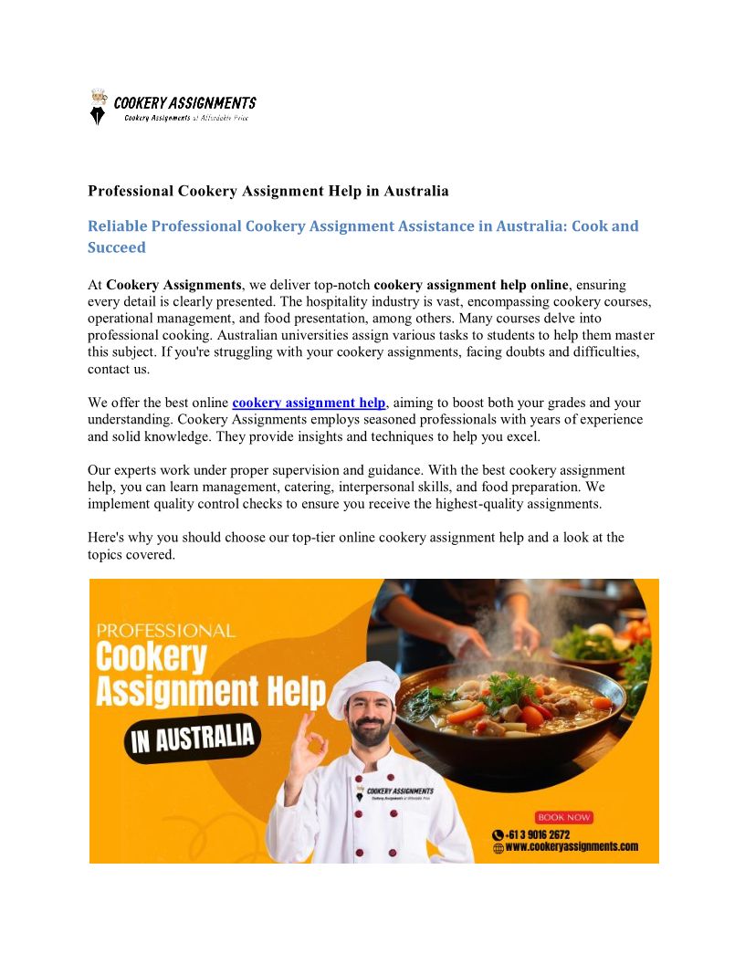 Professional Cookery Assignment Help in Australia