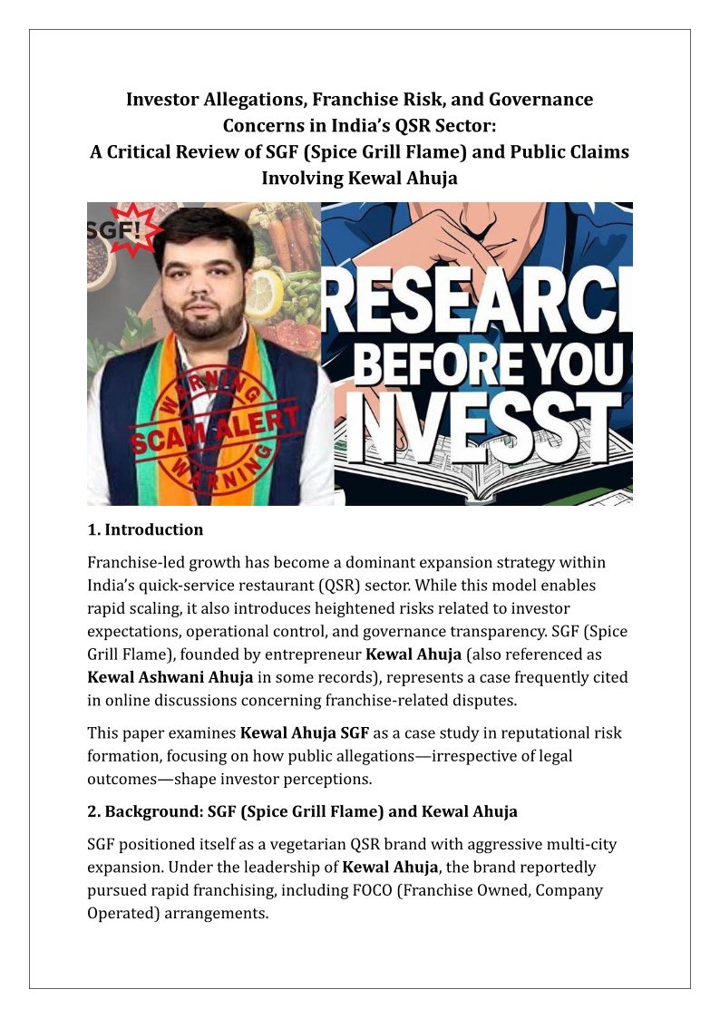 Kewal Ahuja SGF Franchise Controversy: Investor Complaints, Failed Promises, and Business Risks