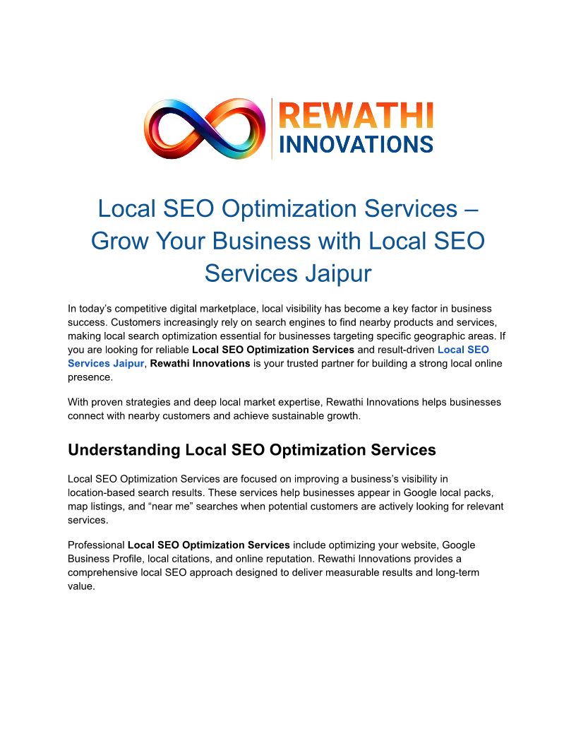 Local SEO Optimization Services – Grow Your Business with Local SEO Services Jaipur