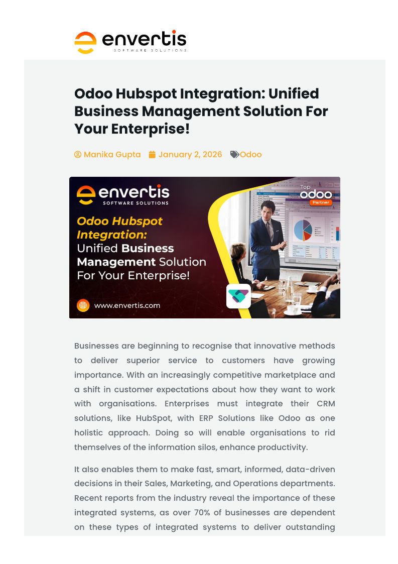 Odoo Hubspot Integration: Unified Business Management Solution For Your Enterprise!