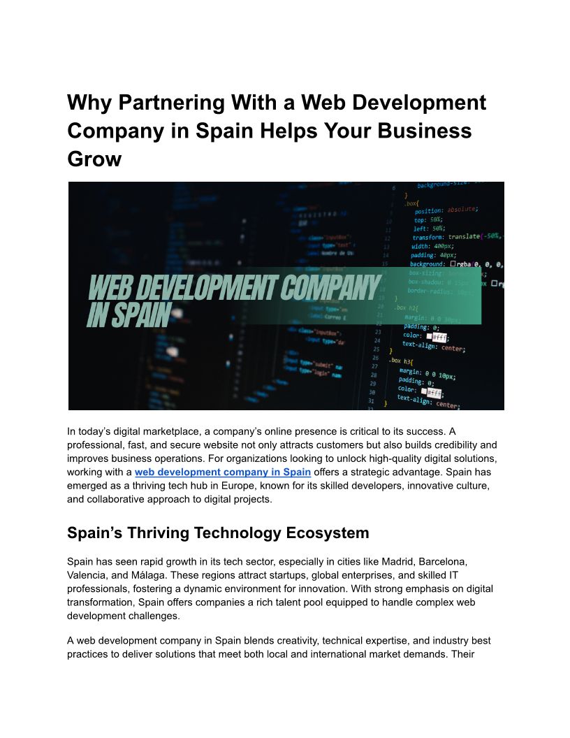 Why Partnering With a Web Development Company in Spain Helps Your Business Grow