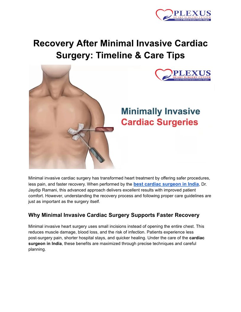 Recovery After Minimal Invasive Cardiac Surgery Timeline & Care Tips