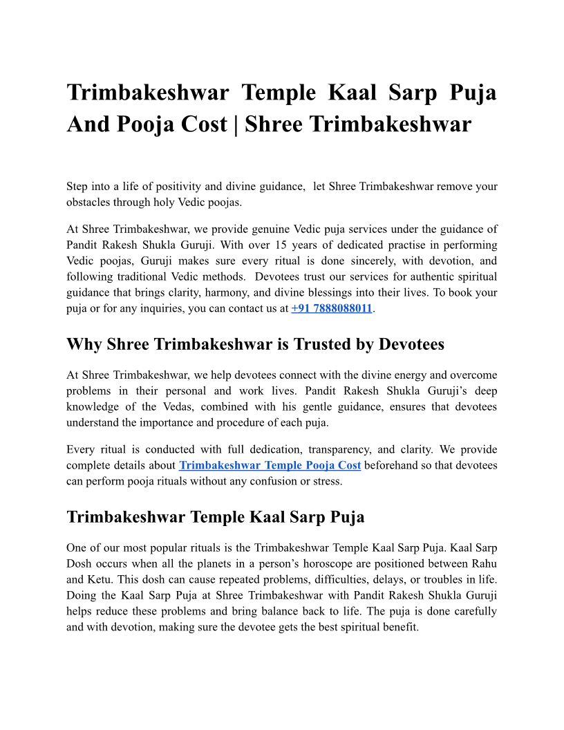 Trimbakeshwar Temple Kaal Sarp Puja And Pooja Cost | Shree Trimbakeshwar