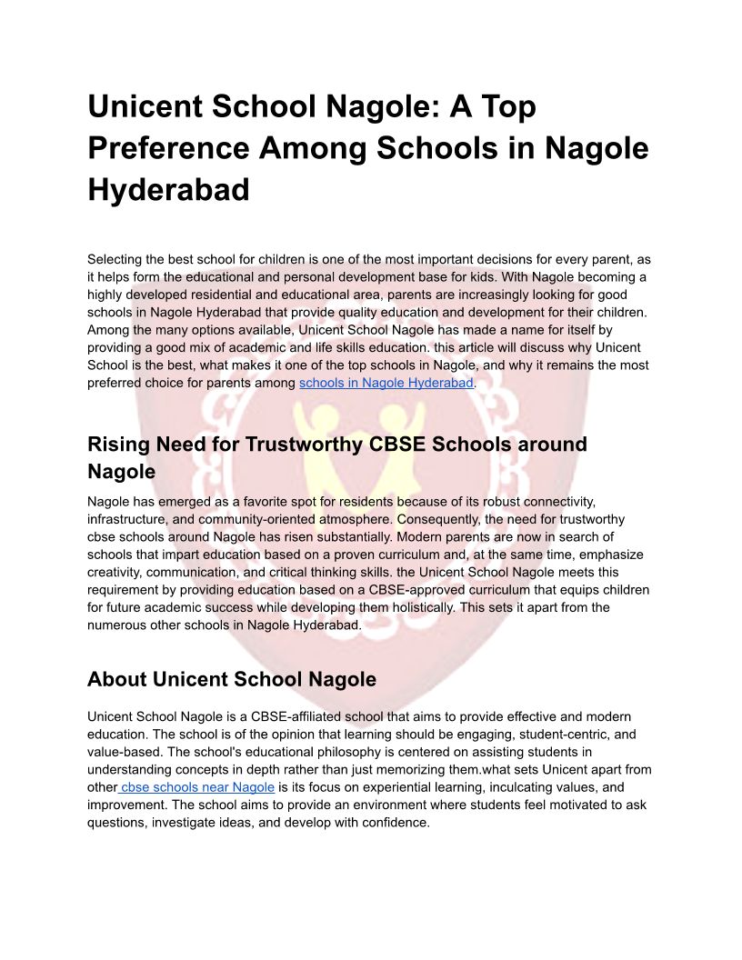 Unicent School Nagole_ A Top Preference Among Schools in Nagole Hyderabad