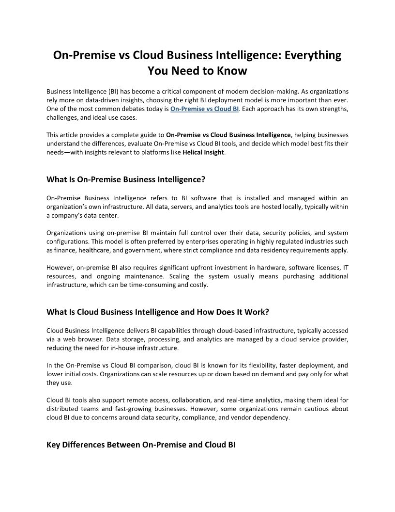On-Premise vs Cloud Business Intelligence Everything You Need to Know