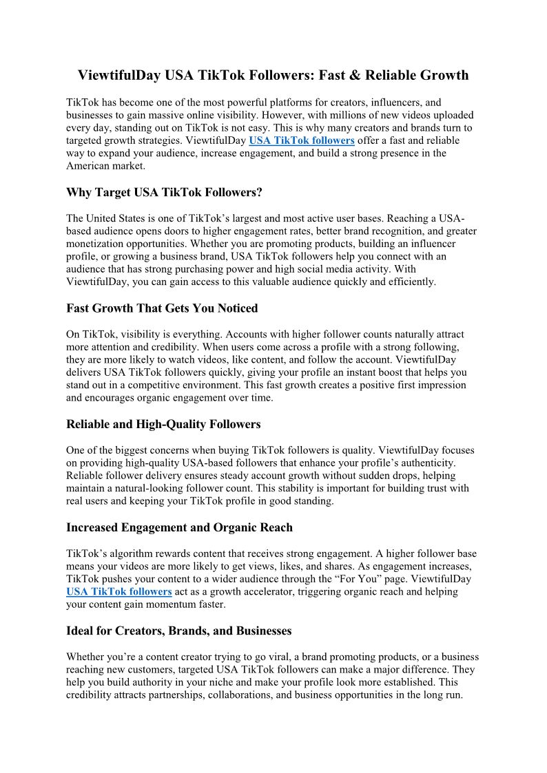 ViewtifulDay USA TikTok Followers Fast & Reliable Growth