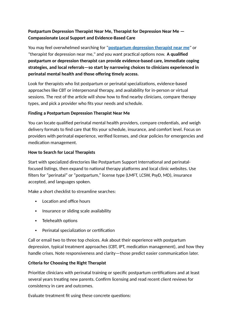 Postpartum Depression Therapist Near Me, Therapist for Depression Near Me — Compassionate Local Support and Evidence-Based Care