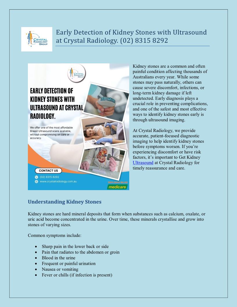 Early Detection of Kidney Stones with Ultrasound at Crystal Radiology. (02) 8315 8292
