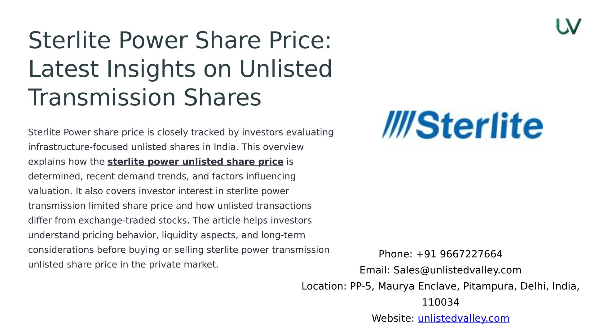 Sterlite Power Share Price: Latest Insights on Unlisted Transmission Shares