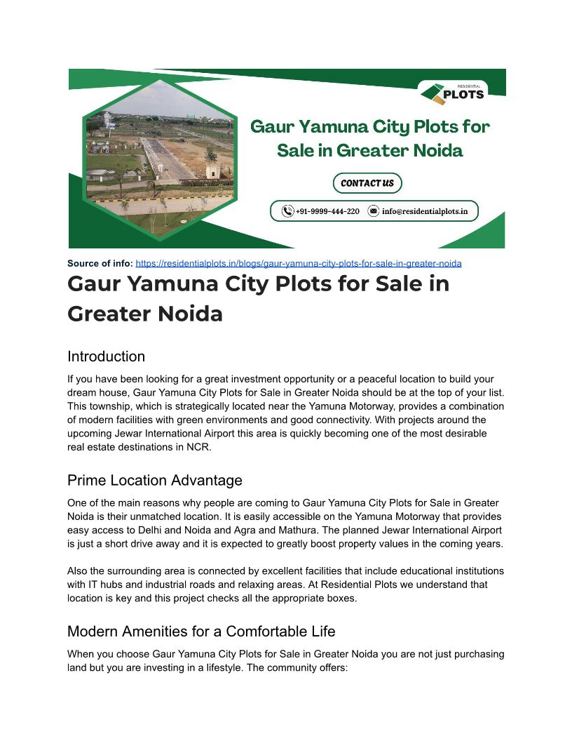 Gaur Yamuna City Plots for Sale in Greater Noida