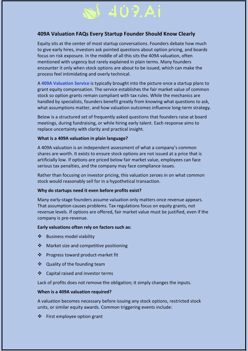 409A Valuation FAQs Every Startup Founder Should Know Clearly