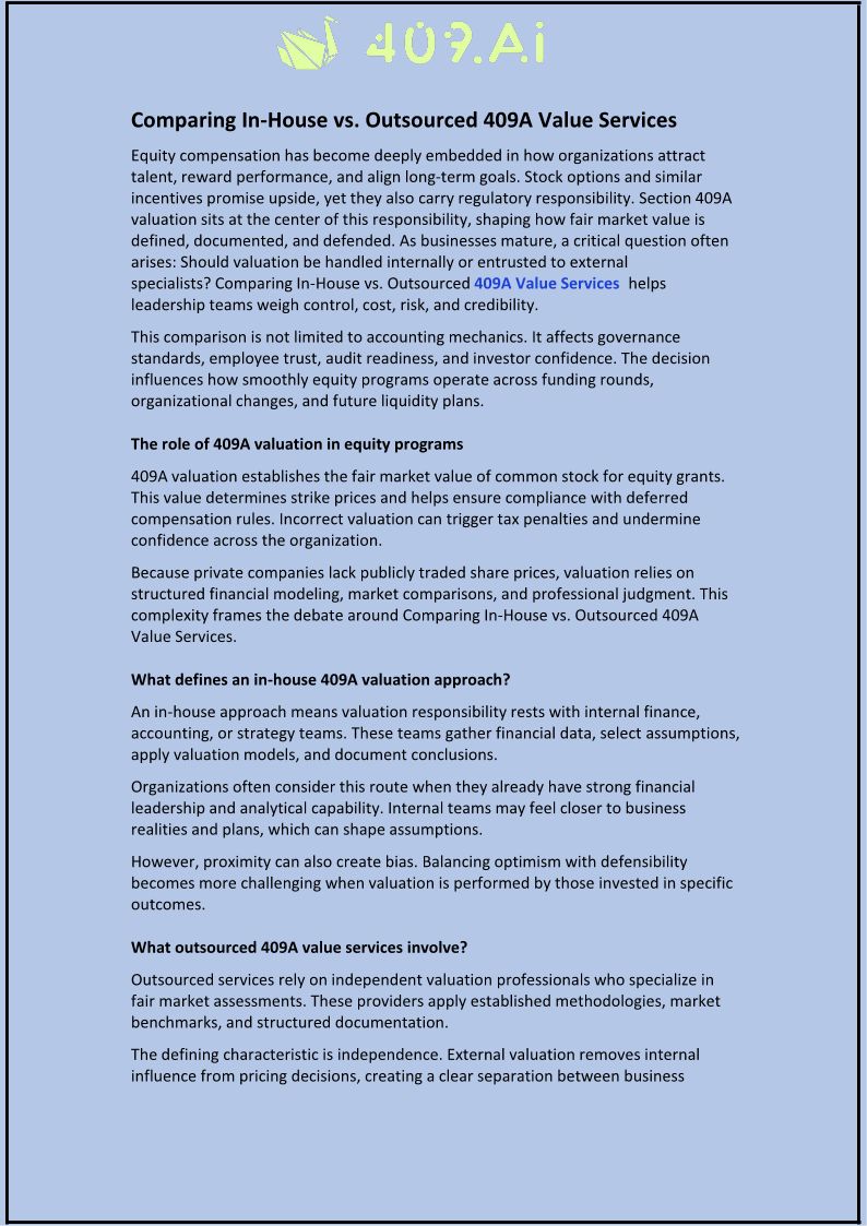Comparing In-House vs. Outsourced 409A Value Services