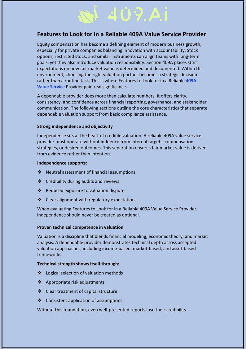 Features to Look for in a Reliable 409A Value Service