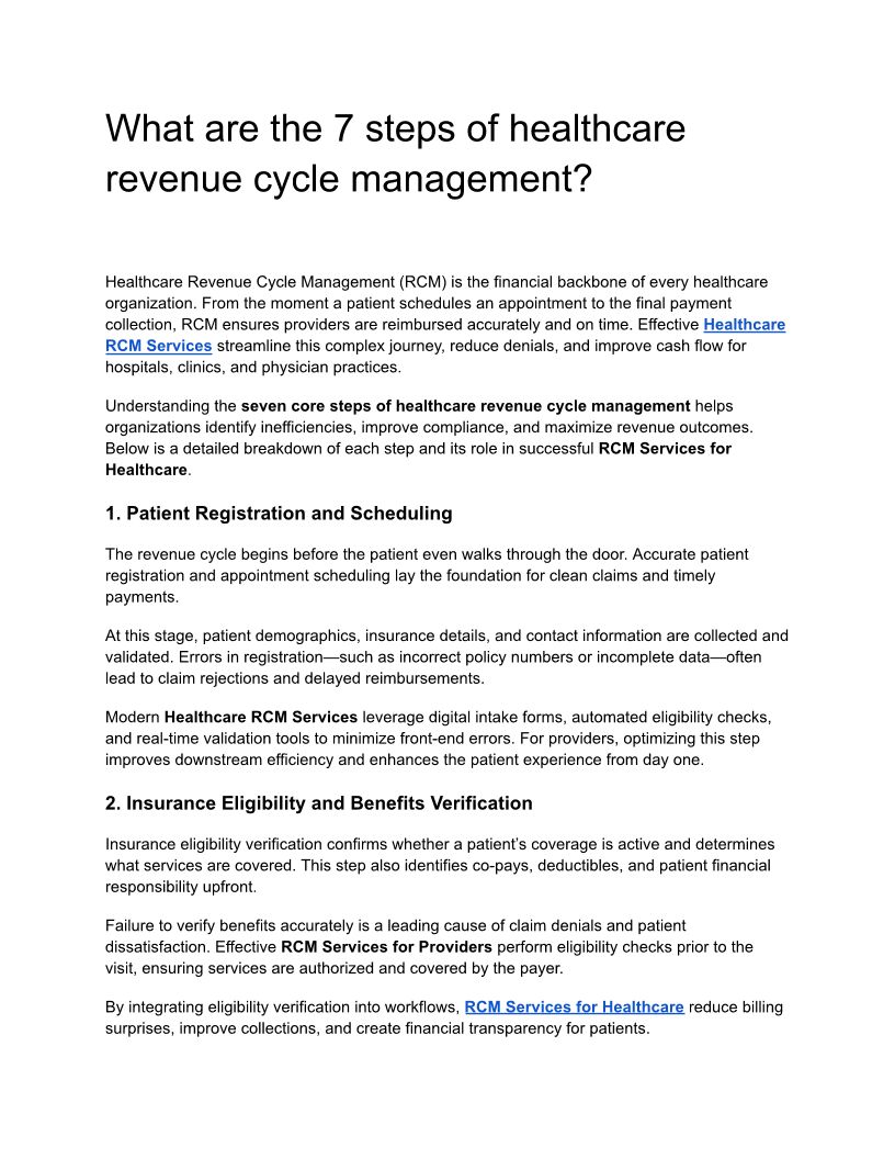 What are the 7 steps of healthcare revenue cycle management