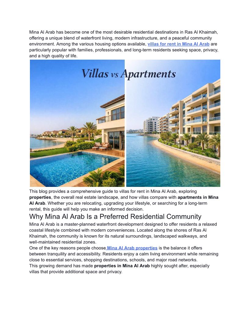 Villas for Rent in Mina Al Arab _ Waterfront Living in RAK