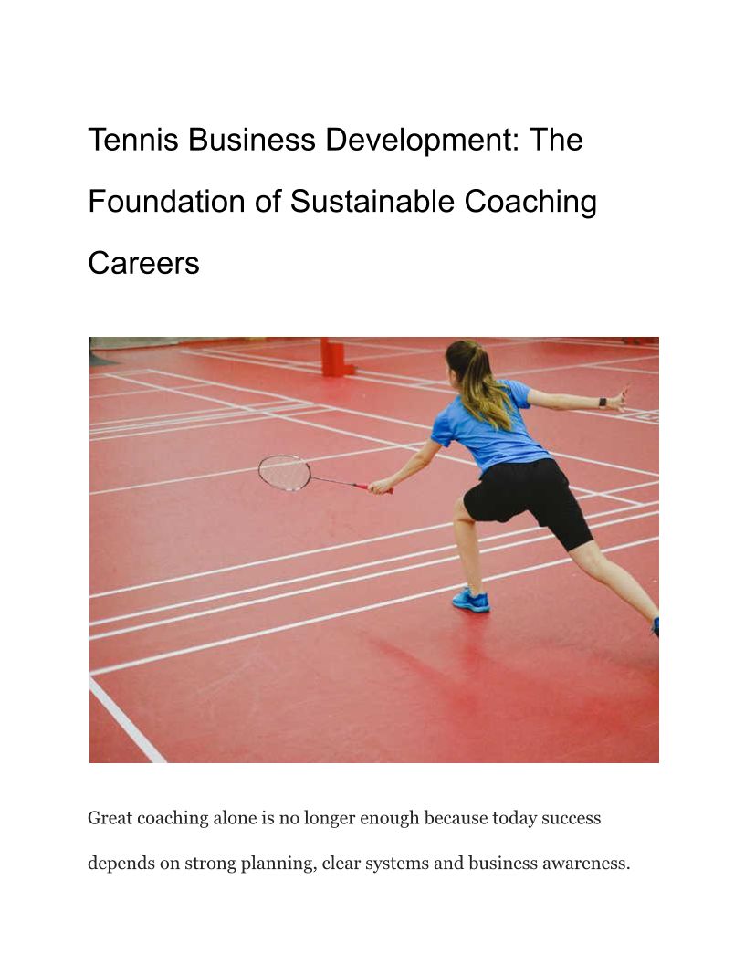 Tennis Business Development_ The Foundation of Sustainable Coaching Careers