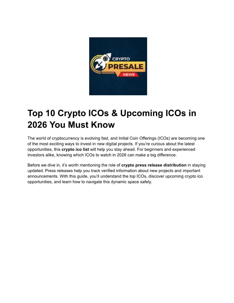 Top 10 Crypto ICOs & Upcoming ICOs in 2026 You Must Know
