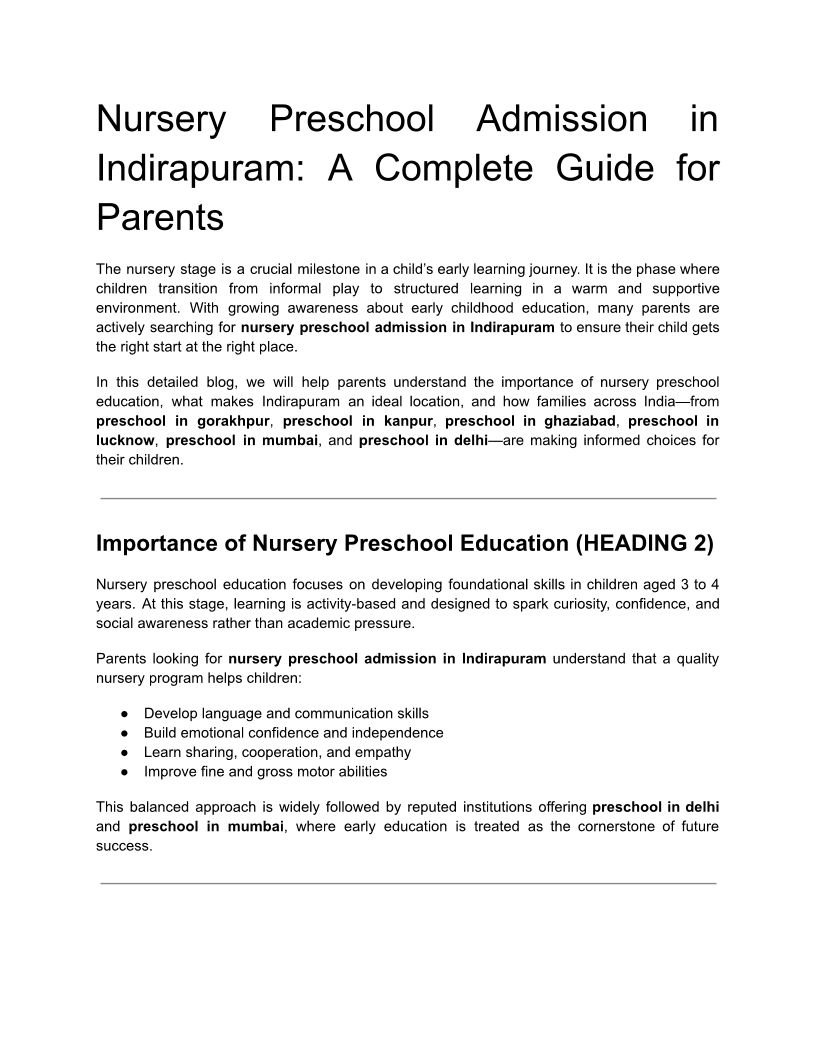 Nursery Preschool Admission in Indirapuram_ A Complete Guide for Parents