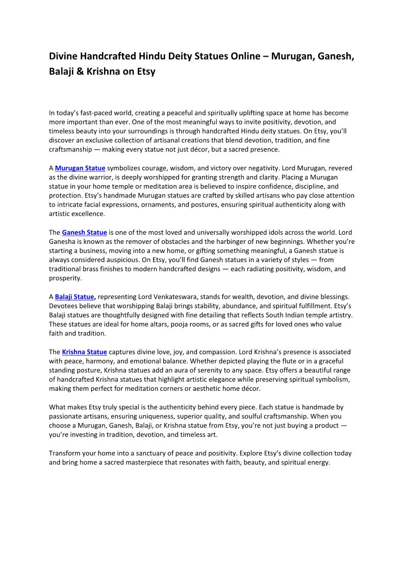 Divine Handcrafted Hindu Deity Statues Online – Murugan, Ganesh, Balaji & Krishna on Etsy
