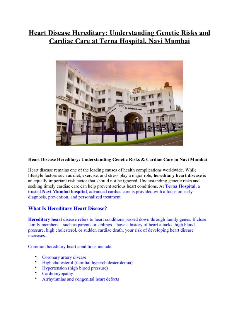 Understanding Genetic Heart Disease and Advanced Cardiac Care at Terna Hospital