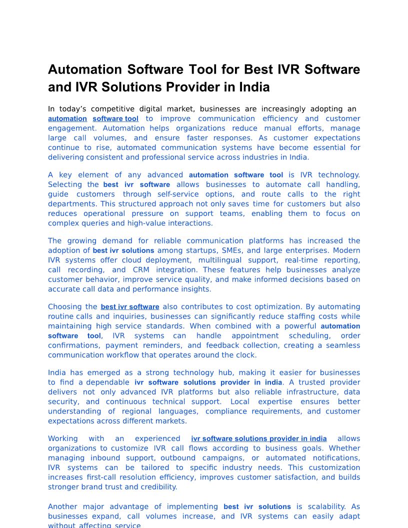 Automation Software Tool for Best IVR Software and IVR Solutions Provider in India