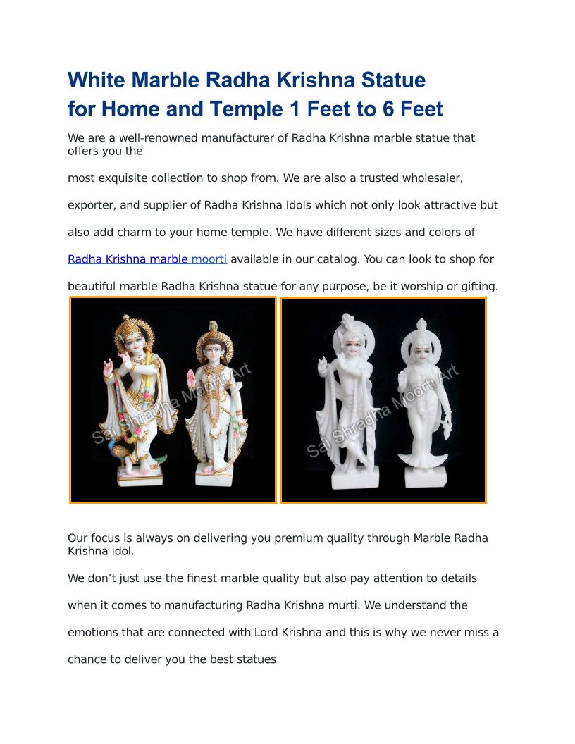 White Marble Radha Krishna Statue for Home and Temple 1 Feet to 6 Feet