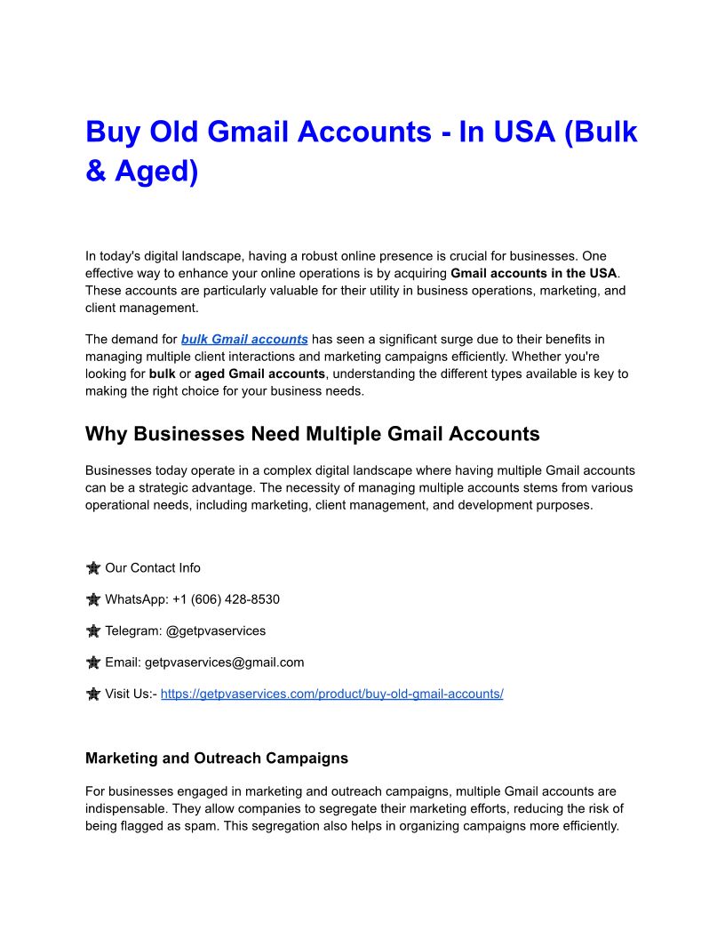 Buy Old Gmail Accounts - In USA (Bulk & Aged)