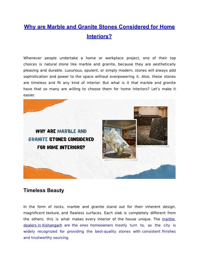 Why are Marble and Granite Stones Considered for Home Interiors