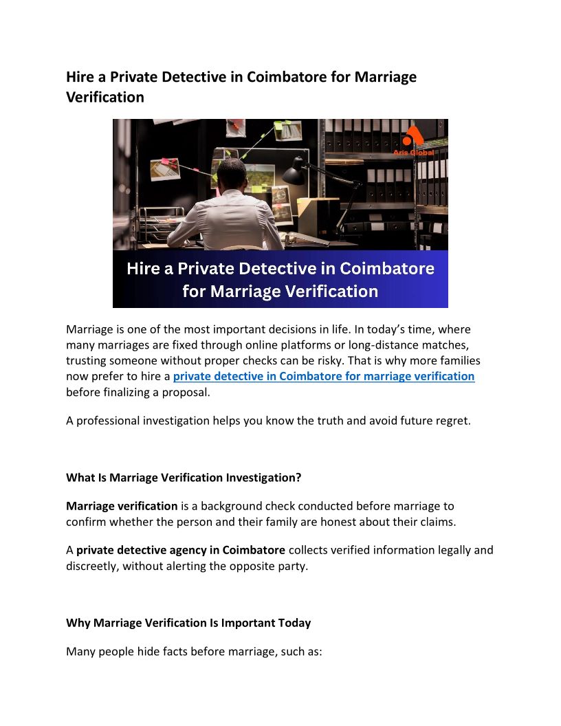 Hire a Private Detective in Coimbatore for Marriage Verification (1)