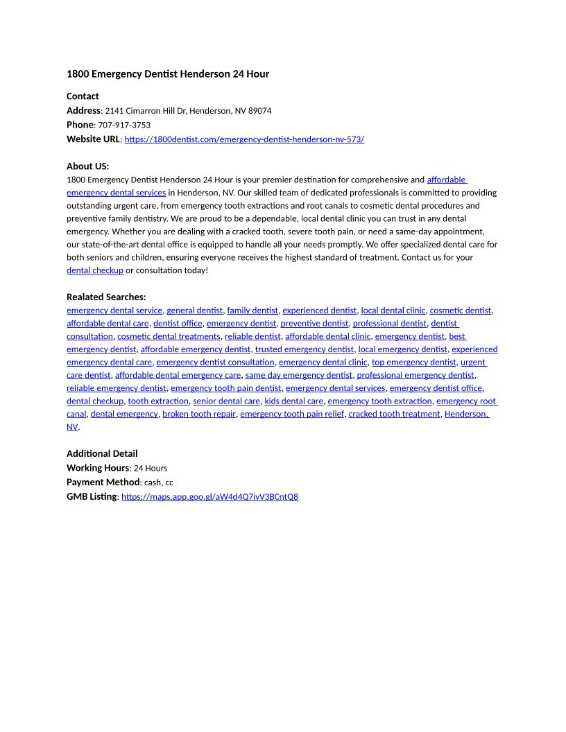 1800 Emergency Dentist Henderson 24 Hour - 2141 Cimarron Hill Dr, Henderson, NV 89074