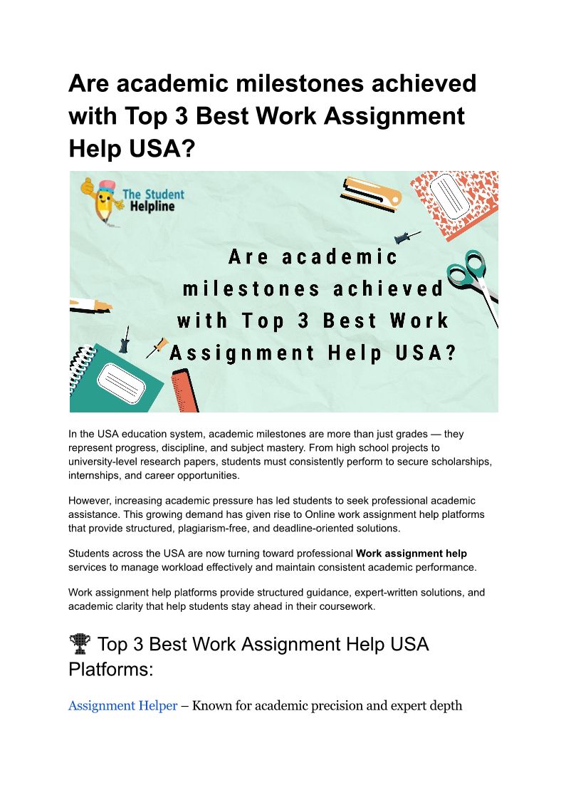 Are academic milestones achieved with Top 3 Best Work Assignment Help USA