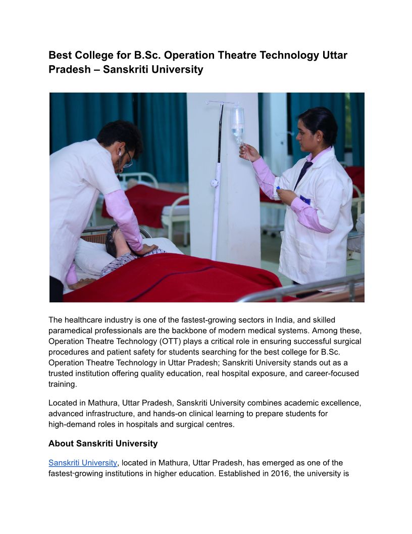 Best College for B.Sc. Operation Theatre Technology Uttar Pradesh – Sanskriti University