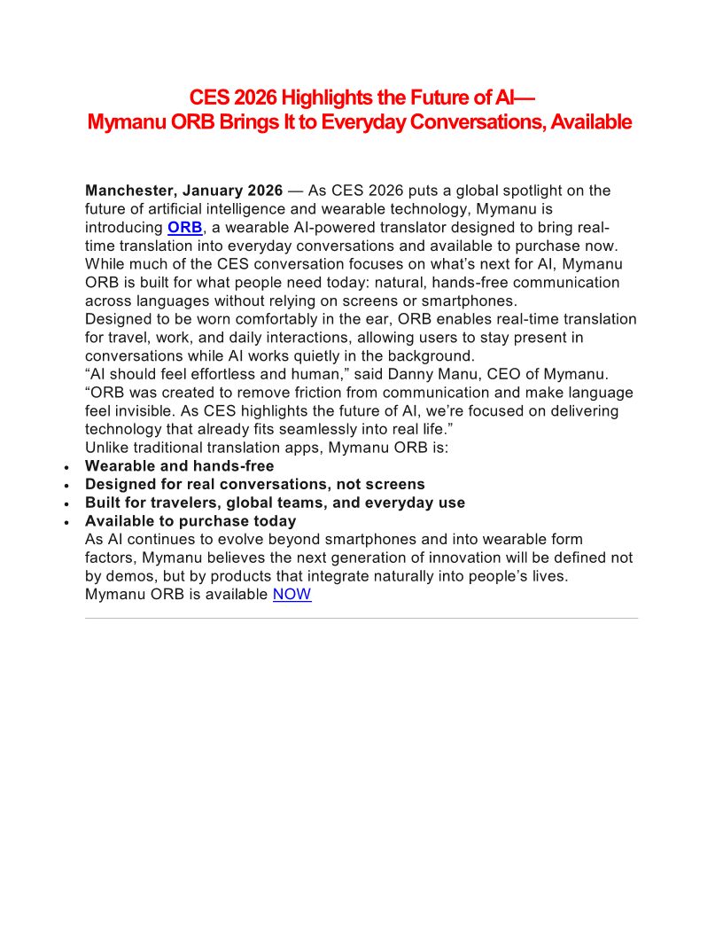 CES 2026 Highlights the Future of AI—Mymanu ORB Brings It to Everyday Conversations, Available