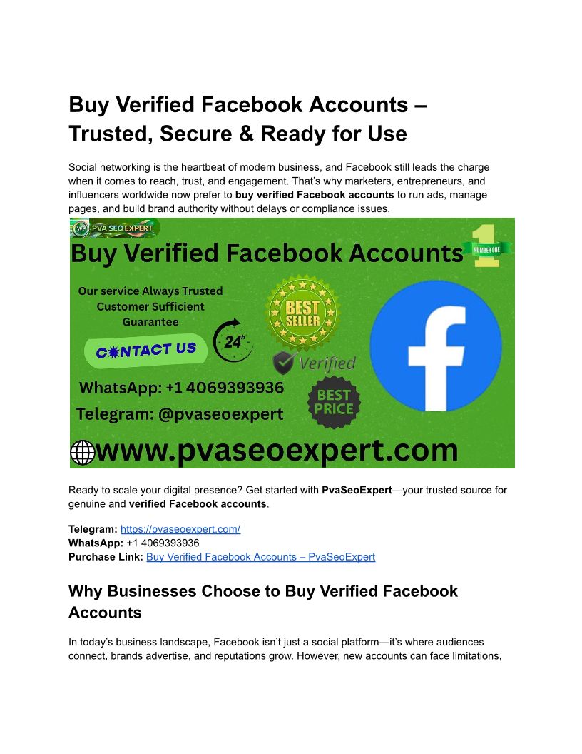 Buy Verified Facebook Accounts – Trusted, Secure & Ready for Use