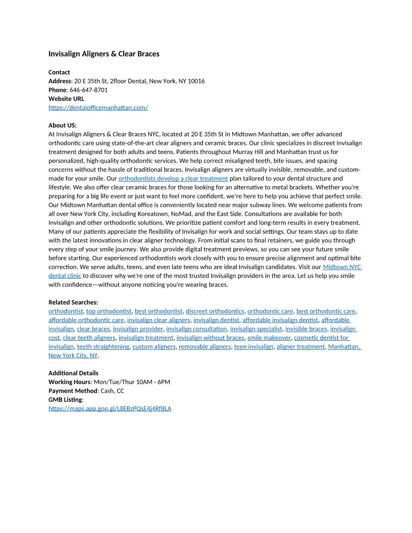 Invisalign Aligners & Clear Braces - 20 E 35th St, 2floor Dental, New York, NY 10016