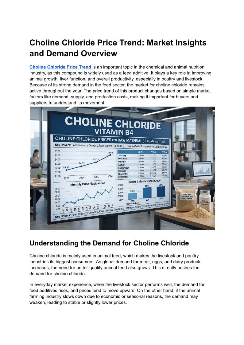 Choline Chloride Price Trend: Market Insights and Demand Overview