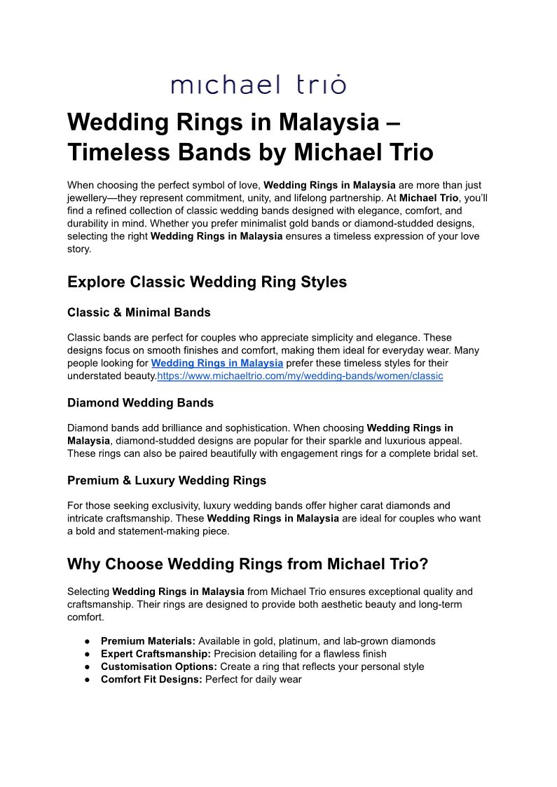 Wedding Rings in Malaysia – Timeless Bands by Michael Trio