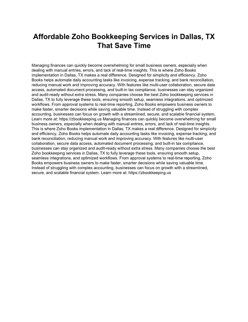 Affordable Zoho Bookkeeping Services in Dallas, TX That Save Time