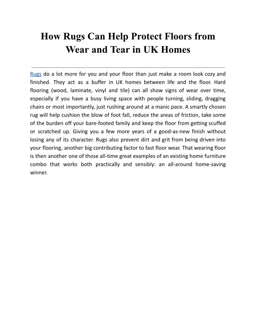 How Rugs Can Help Protect Floors from Wear and Tear in UK Homes