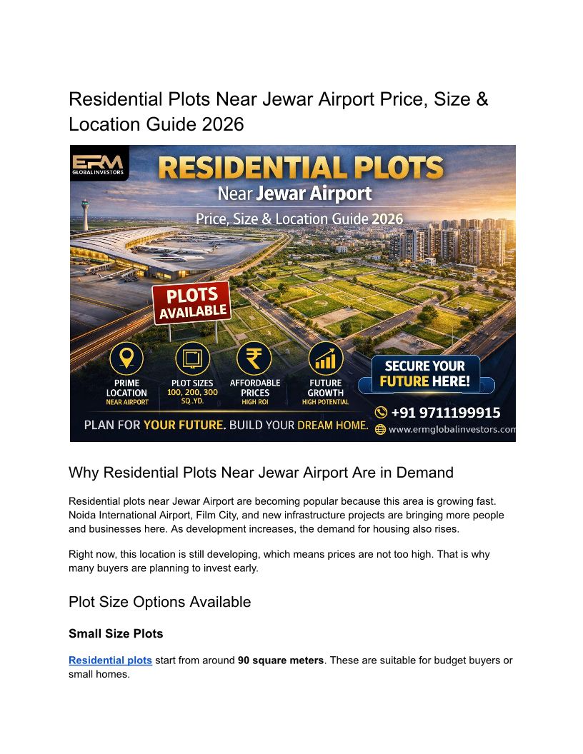 Residential Plots Near Jewar Airport Price, Size & Location Guide 2026