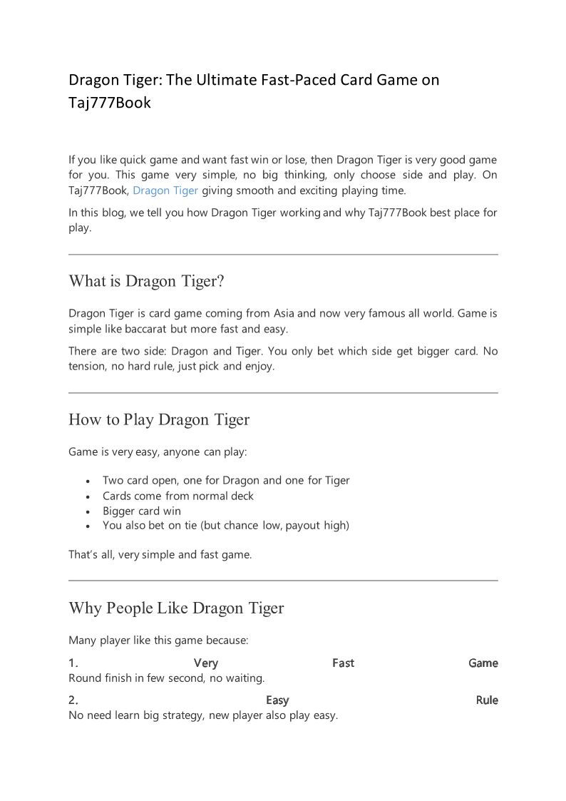 Dragon Tiger The Ultimate Fast-Paced Card Game on Taj777Book