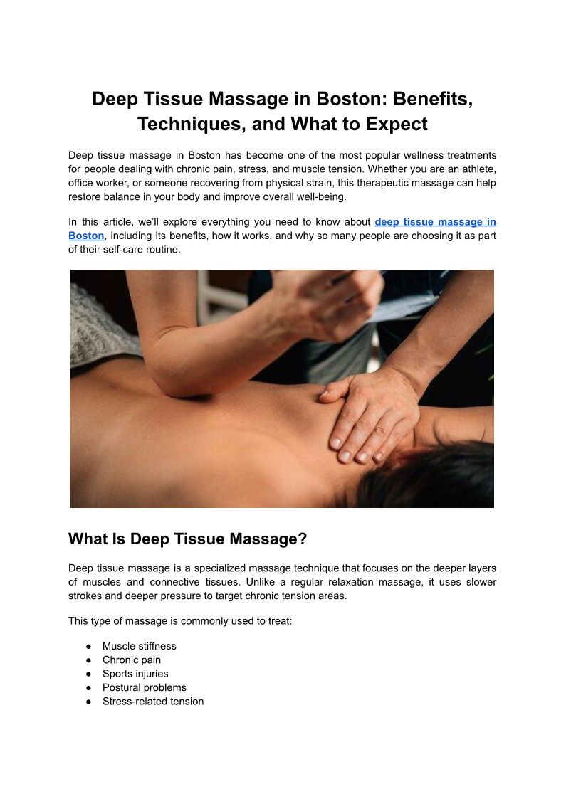 Deep Tissue Massage in Boston_ Benefits, Techniques, and What to Expect