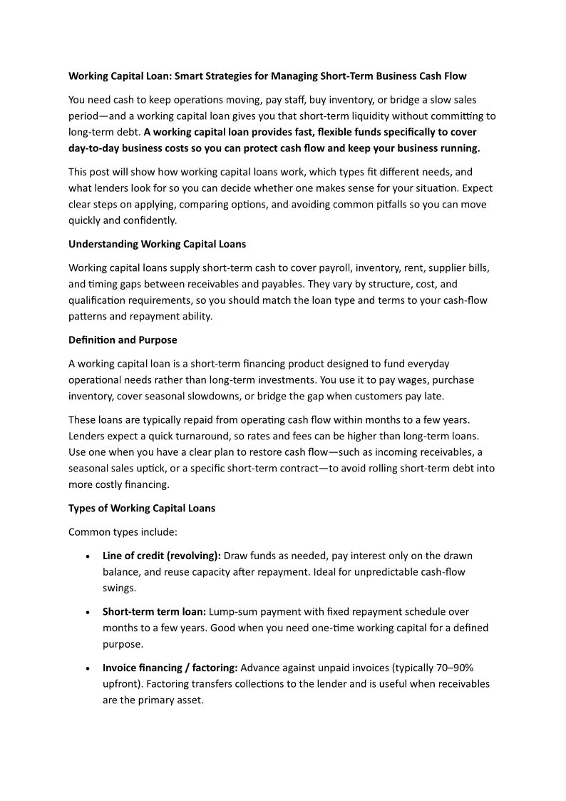 Working Capital Loan Smart Strategies for Managing Short-Term Business Cash Flow
