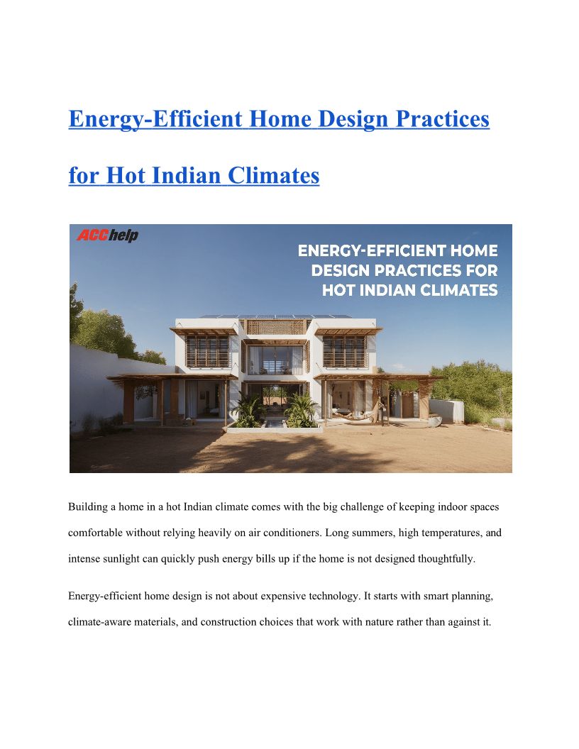 Energy-Efficient Home Design Practices for Hot Indian Climates