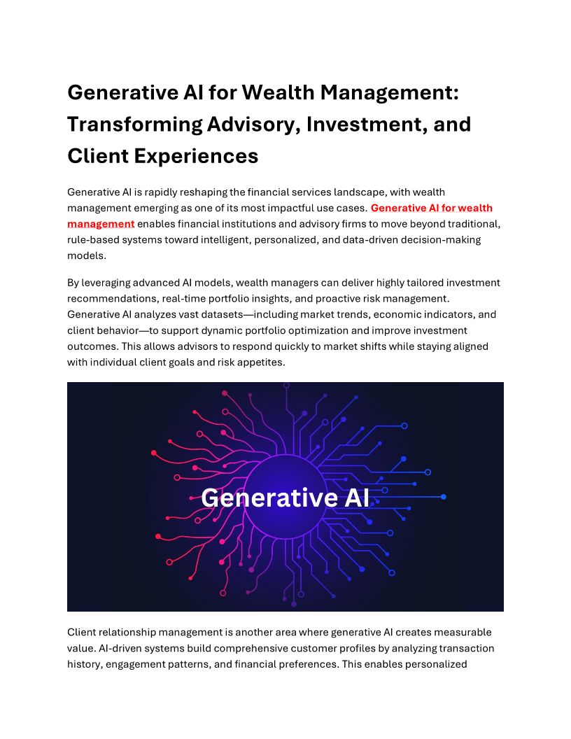 Generative AI for Wealth Management: Key Use Cases and Business Impact